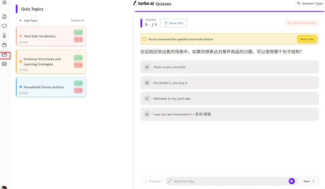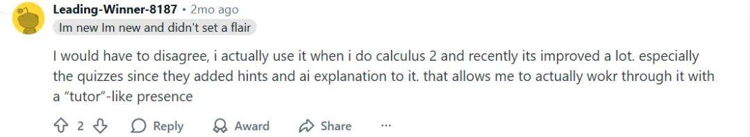 「特别是它的测验功能,自从加入了提示(hints)和 AI 解释(AI explanation)后,效果更好了,让我能够在『家教』陪伴下真正完成练习。」