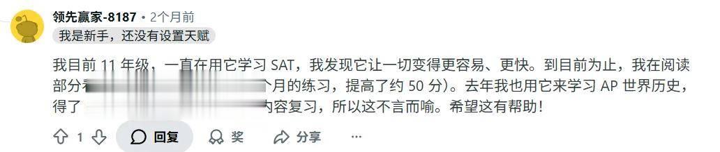 还有人用它备考 SAT,「阅读部分提升了 50 分」。