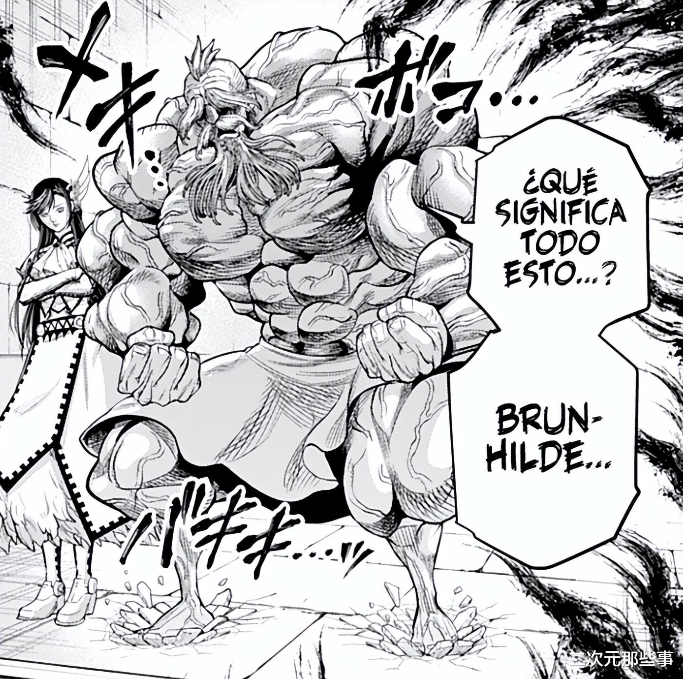 双方交手一回合就让在场的人类观众震撼不已,特别是坂田金时,宫本武藏更是评价他的力量不属于人类。与此同时,正在和布伦希尔德一起观战的宙斯也发现了不对劲,坂田金时使用的就是神明的力量,这让宙斯非常愤怒,他直接变成肌肉形态质问布伦希尔德是怎么回事。