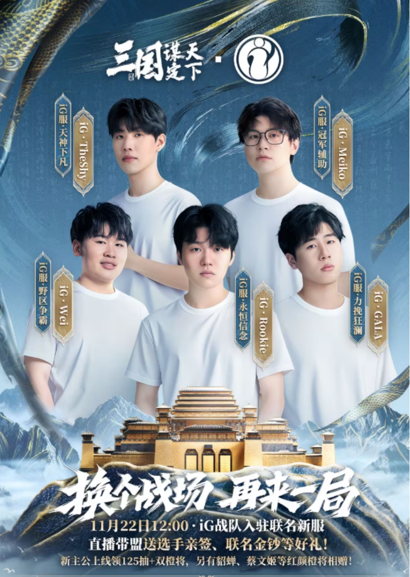 周末上午,你翻着iG的超话,看着粉丝们分享的选手日常,忍不住想:有没有一个地方,能让粉丝和选手一起“玩”?现在,《三国:谋定天下》给了答案——11月22日,iG联名服开启,TheShy、Rookie、GALA这些选手都要入驻,和粉丝一起在三国战场“谋天下”。