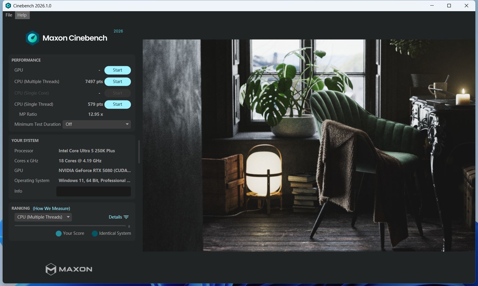 在Cinebench测试中,这颗Ultra 5 250K Plus表现同样亮眼,R23多核成绩达到32387分,单核2330分;而在新版Cinebench 2026中,多核为7497分,单核579分。