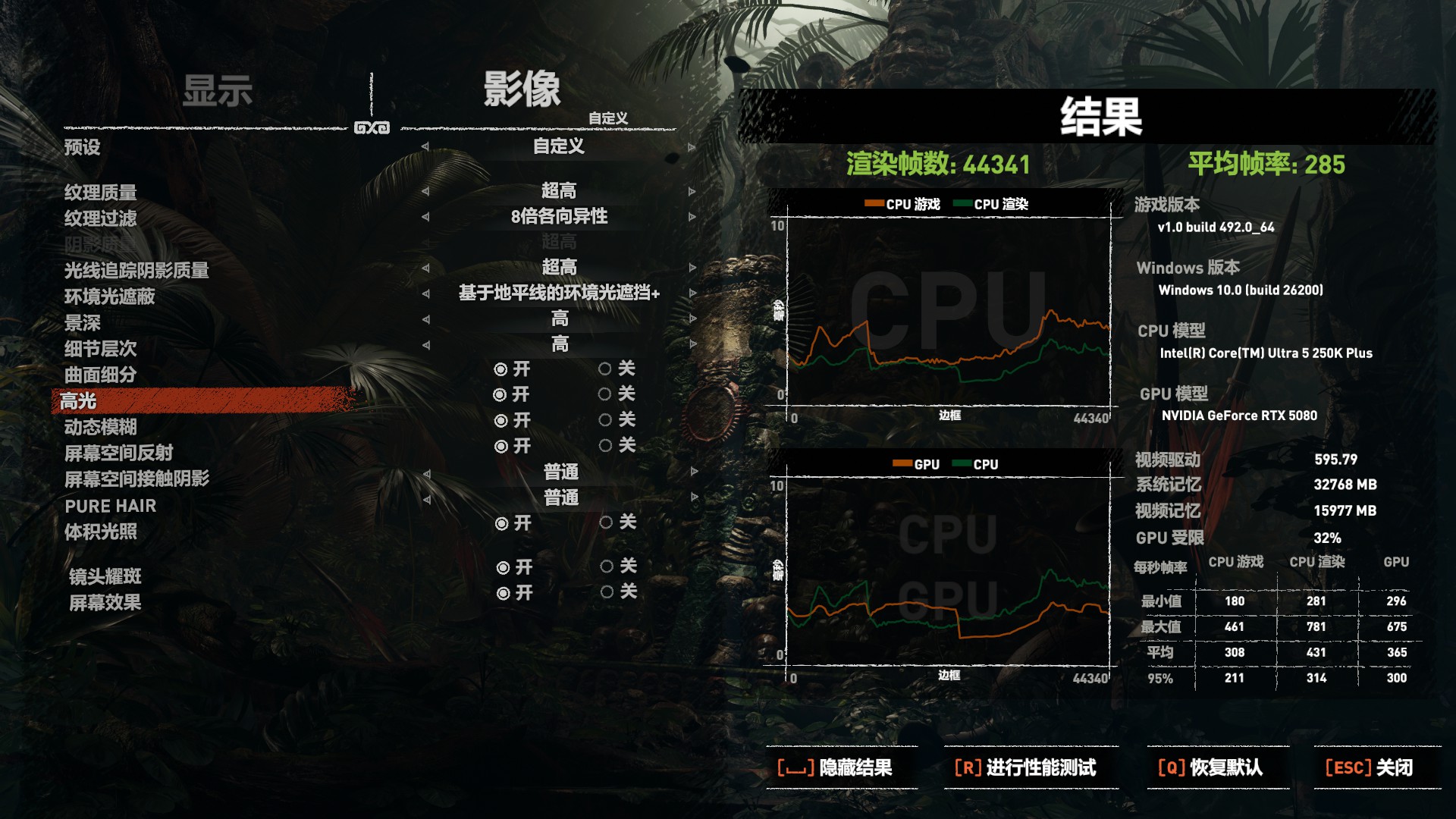 从实测来看,开启IPO之后,整体帧率确实有稳定提升:以《古墓丽影》基准测试为例,平均帧率由273FPS提升至285FPS,带来了约4%~5%的性能增益,同时帧率表现也更加稳定。