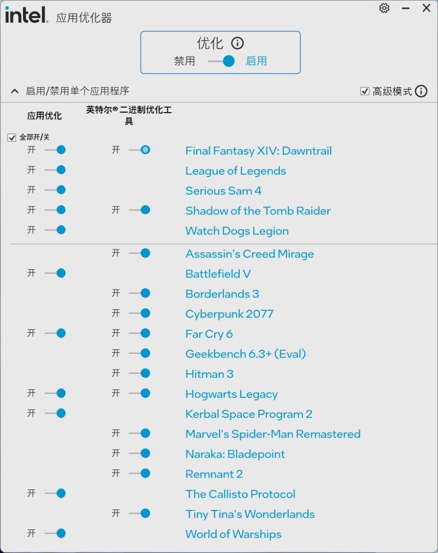 英特尔这套应用优化器IPO可以看作是平台级的一键性能优化方案,通过针对不同游戏进行精细化调度,自动分配CPU资源,让关键线程优先运行在性能核心,同时减少后台干扰与调度延迟,在无需手动调校的情况下提升帧率稳定性与响应速度。配合250K Plus本身更高频率与调度优化,相比上代245K在游戏与多线程负载下都有更好的释放表现,整体属于即开即用、能明显提升实际体验的轻量级性能增强功能。