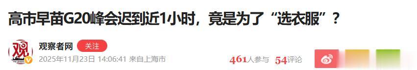 那么问题来了,高市早苗为何会迟到近一个小时?尽管日方并没有给出解释,但是不少观点都认为,这或许是因为高市早苗挑衣服导致其迟到。