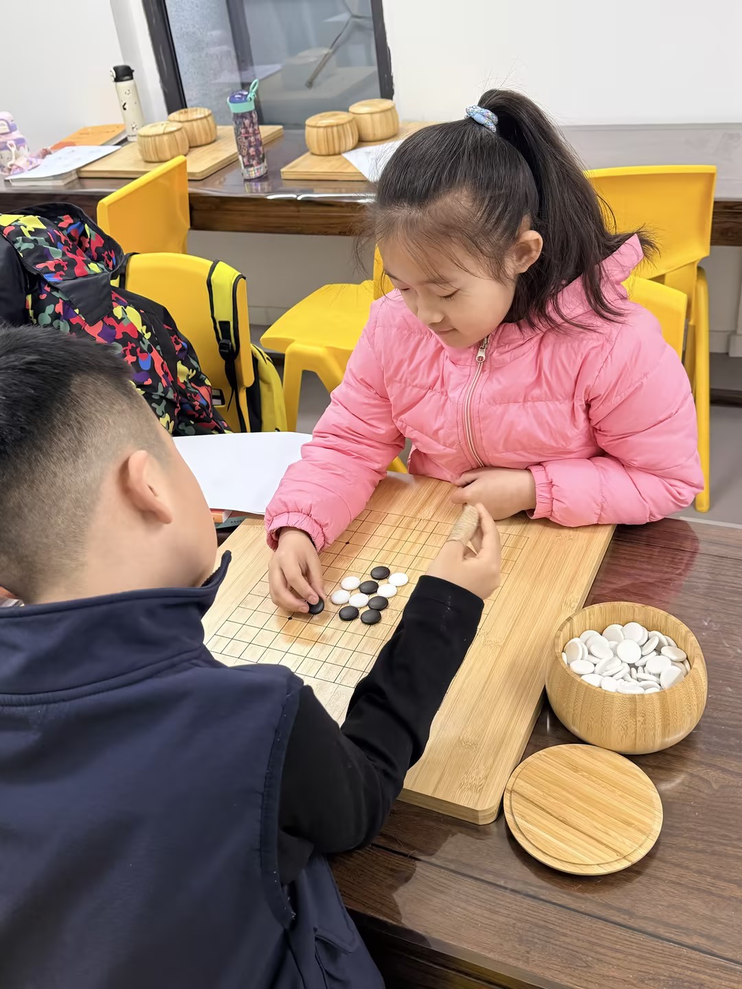 更重要的是,吃子能帮孩子建立最基础的围棋规则感。如果跳过吃子,直接学布局,孩子会陷入一个核心困惑:“我摆这些棋子到底干嘛?”“为什么不能随便落子?”“摆在这里能赢吗?” 没有对“生死规则”的理解,布局对他们来说,就是毫无意义的“摆棋子游戏”,学不了多久就会觉得枯燥、无聊,最终放弃。而先学吃子,孩子会慢慢明白:落子要考虑“气”,要学会保护自己的棋子、吃掉对方的棋子,这种规则感,会为后续学习布局打下坚实的基础,让他们明白“布局不是随便摆,而是为了更好地占据地盘、保护自己、攻击对方”。