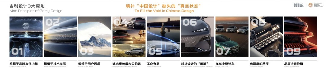 犀利的问题往往会引来争议,这些争辩与争鸣恰是时代与社会进步最鲜明的注脚比如在2025国际汽车设计论坛上,吉利汽车集团副总裁陈政就抛出了3个犀利十足的行业叩问:1. 中国设计是否真正构建了根植于中国文化的设计内核,而非停留在浅层的元素堆砌?2. 中国设计能否跳出技术迭代的被动逻辑,构建出具有文化主体性的设计范式?3. 中国设计能否从制造的规模化,蜕变为引领全球的价值范式?针对这些问题,吉利给出了未必正确,但却具有鲜明品牌主张的回答,针对“什么是真正的中国设计”,陈政认为它必须满足三个条件:首先,它必须找到自己的根脉。中国设计不能是无源之水、无本之木,而应该扎根于中华文明的深厚土壤,从传统文化中汲取灵感和养分其次,它需要拥有自己的价值主张。真正的中国设计应当有独立的审美判断和价值标准,不盲从西方,也不简单迎合市场,而是建立起基于中国文化和用户需求的设计哲学最后,它必须具备非常鲜明的特征。好的设计应该让人一眼认出“这是中国的设计”,形成独特而持久的品牌识别从根脉到主张再到特征,这套理论背后,伴生着中国色吉利青、吉利纹样、中国R角、吉利品牌字体、吉利设计九大原则等产学研成果的发布。这些成果的价值没有绝对的评判标准,但俨然迈出了敢做不同、敢求答案的一步