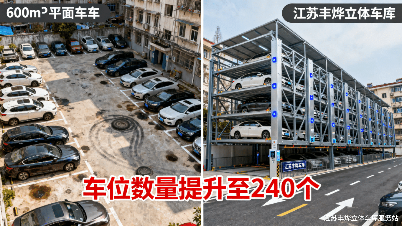 传统平面车库受限于地面布局,每增加一个车位都需占用额外土地。而立体车库通过垂直空间开发,实现“向上要空间”。以江苏丰烨的升降横移类立体车库为例,某南京老旧小区项目中,600㎡空地采用传统平面车库仅能容纳90个车位,改用江苏丰烨立体车库后,车位数量提升至240个,且不影响小区原有交通动线。这种高容量特性,让立体车库在土地资源紧张区域极具竞争力。
