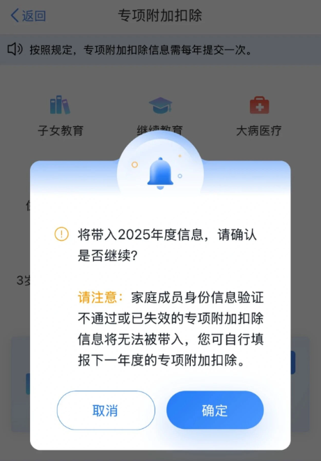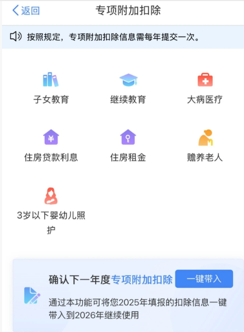 提醒:如果2025年的填报信息没有变化,可直接在App里选择“一键带入2026年度”,再核对一遍是否有信息需要更新(比如子女教育阶段变化、租房地址变更等)。