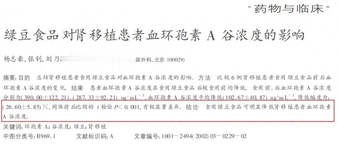 因此,对于正在服用环孢素和他克莫司的所有肾友们,最好避免食用绿豆食品(绿豆粥、绿豆汤等)。