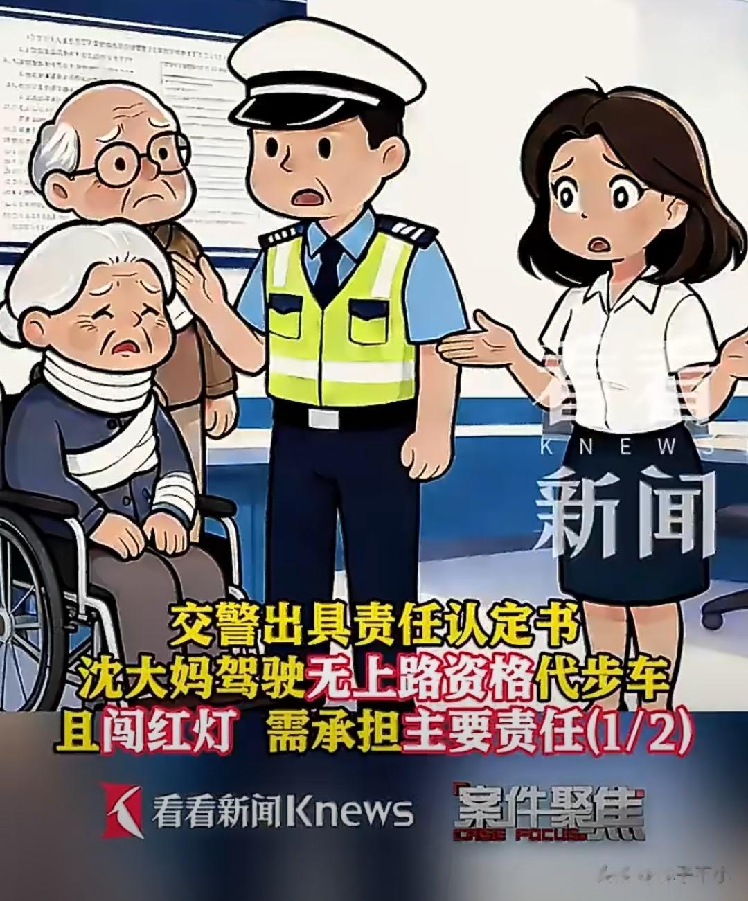 如果从情理上来讲,我觉得沈大妈闯红灯的行为才是导致这场事故的罪魁祸首。
