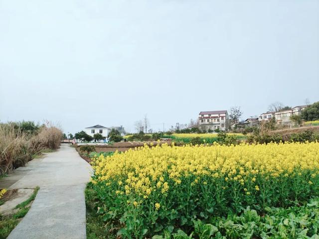 汉初村村委会东侧的油菜花丛,水泥小路连接凤凰湾。