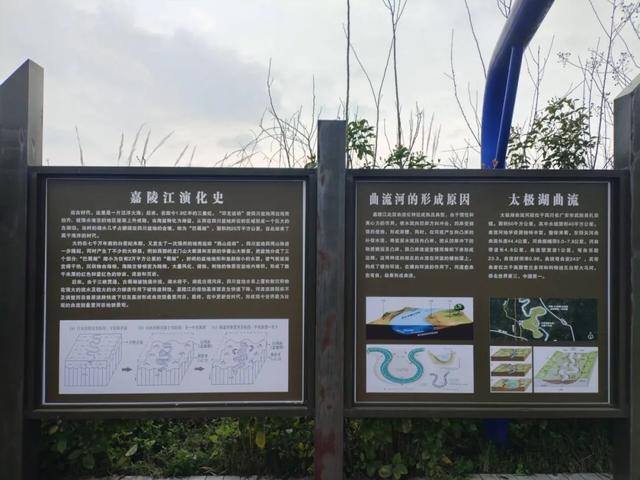 嘉陵江在这一段的曲流地貌,让当地拥有了开展自然地理科普的资源条件。汉初村便邀请专业团队,通过图例展示与文字撰写,进行河流地质科普。