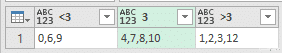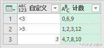 统计下图 1 中每个数值出现的次数,分成次数小于 3、等于 3 和大于 3 三类,将每一类的所有数值合并在同一个单元格中,按升序排序,以逗号分隔。