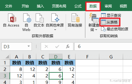 1. 选中数据表的任意单元格 --> 选择任务栏的“数据”-->“从表格”
