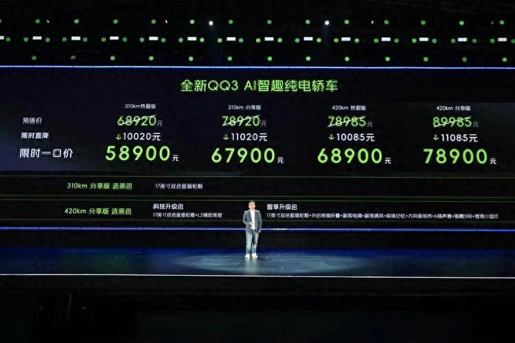 3月30日,奇瑞汽车旗下全新一代小型纯电车型奇瑞QQ3正式上市,共推出4款车型,限时一口价为5.89-7.89万元。