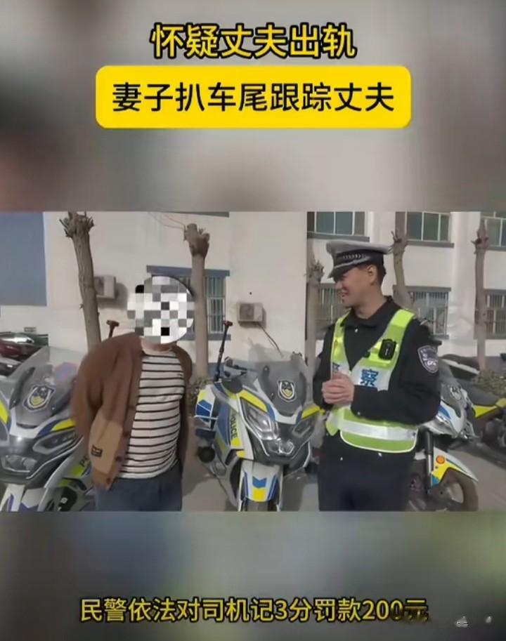 大姐就这样跟随丈夫感受速度与激情,结果丈夫出轨的证据没抓到,却等来了交警的罚单200元3分。