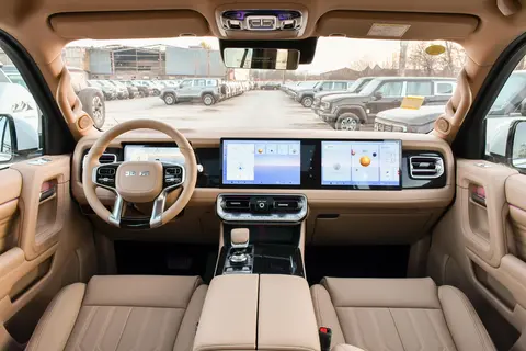 内饰部分迎来质感升级,采用全新深灰色配色,全车座椅与车顶均以翻毛皮质感材质包裹,座椅及门板缝线由直线条升级为菱形样式,搭配哑光木纹饰板,营造出更浓郁的豪华氛围。配置方面,新增后排座椅电动调节功能,继续保留中控屏+副驾屏连体屏、后桥差速锁、前排座椅加热/通风等实用配置,新增的车载制氧机提供弥散、鼻吸两种供氧模式,搭配卫星电话,进一步满足多元出行需求。