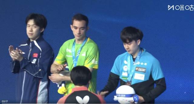 可轮到松岛辉空,他绕了一圈,跟林昀儒握了手,跟雨果也握了手,偏偏到了王楚钦这里,直接把人给忽略了,头也不回地走向自己的站台。