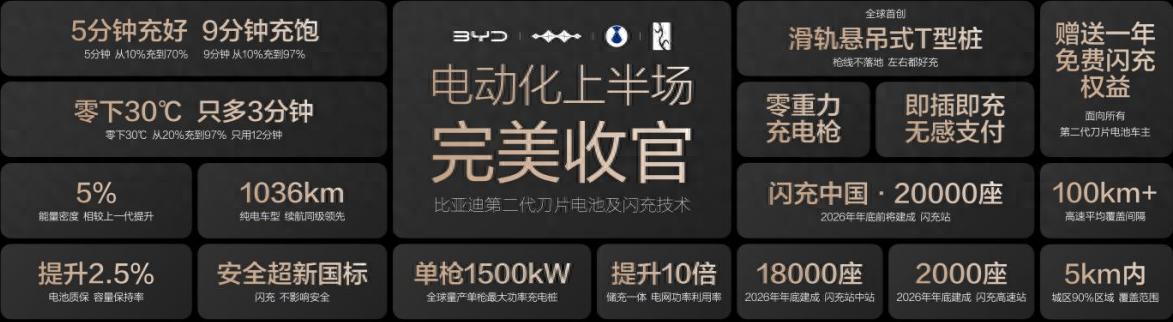 第二代刀片电池与闪充技术的发布,不止是比亚迪自身的一次技术跃迁,更是新能源电动化上半场的完美收官。当补能效率全面超越燃油车,当全场景补能不再有地域与温度的壁垒,当闪充、续航、安全、寿命不再是两难选择,新能源汽车的全民普及,终于跨过了最后一道核心门槛。