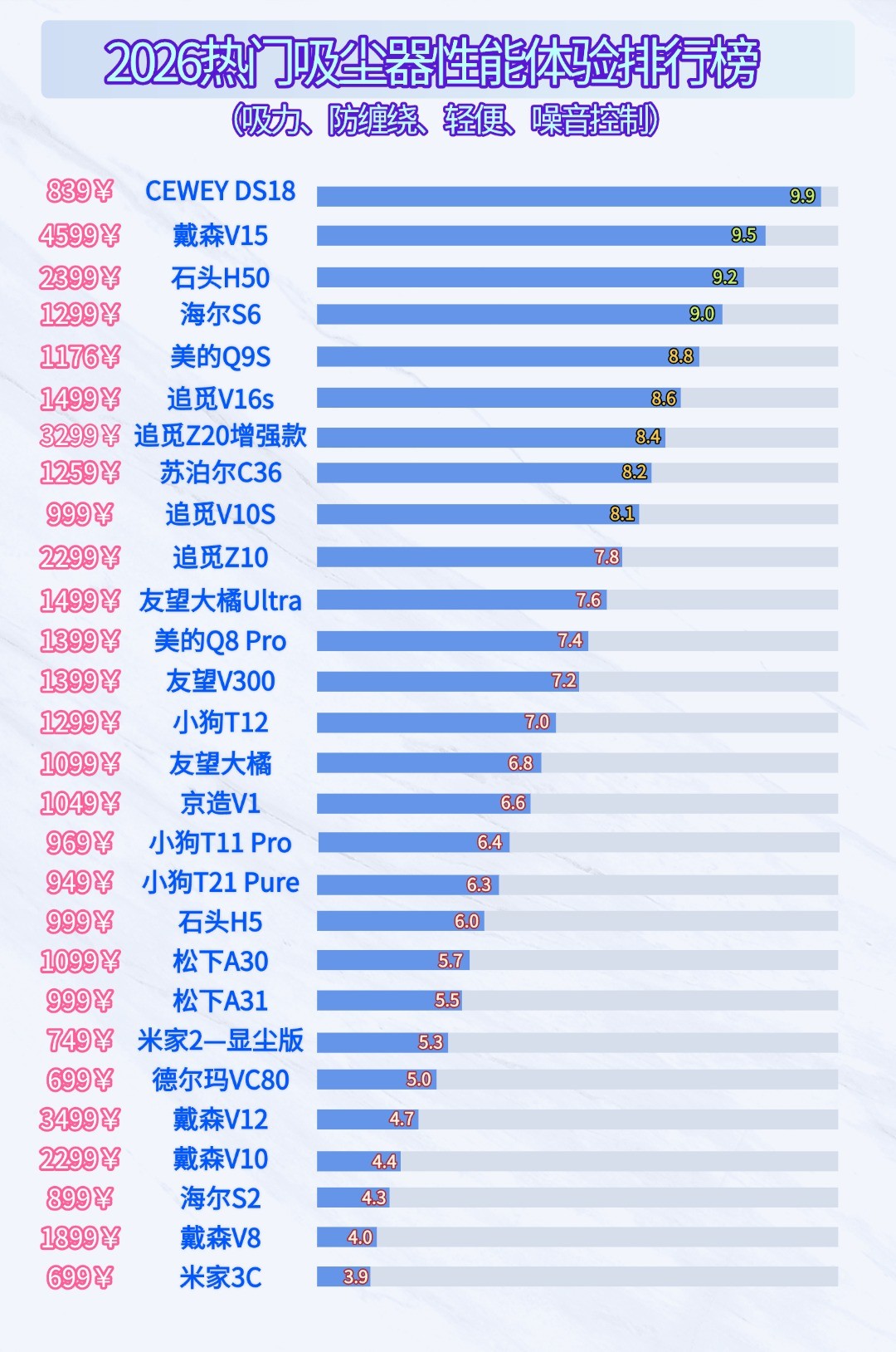 无线吸尘器十大排名榜,什么牌子最好最实用?为了让大家避开雷区、挑选到真正好用实用的无线吸尘器,我们综合海量真实用户的体验、长期测试的结果及大多数家庭实际的清洁需求,最终整理出这份2026年使用体验、清洁效率以及口碑都不错的十大无线吸尘器推荐名单,供各位参考: