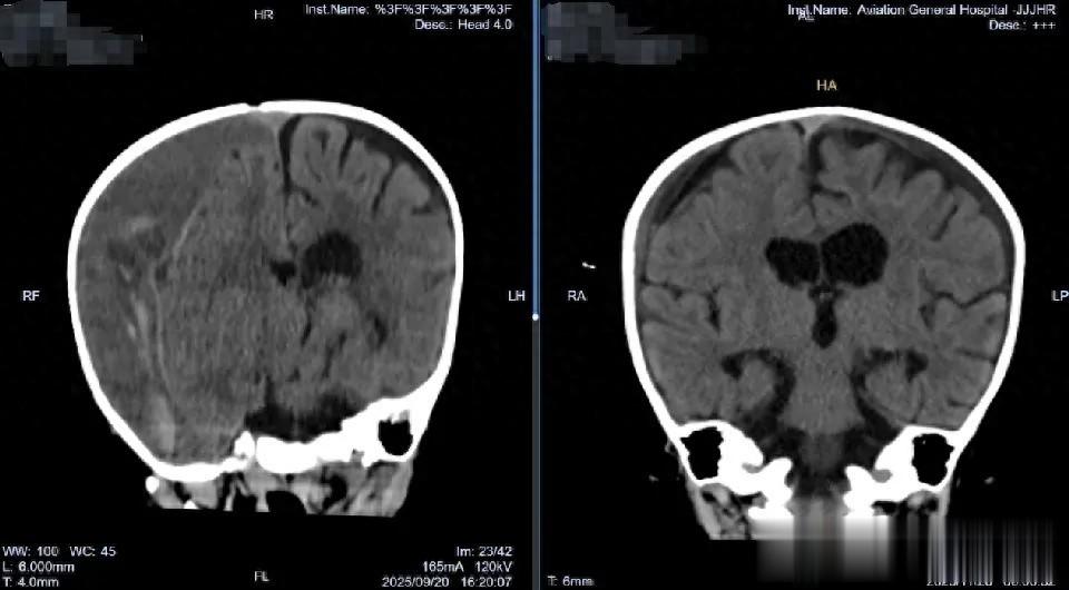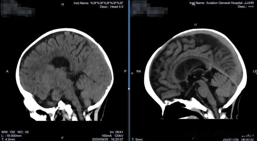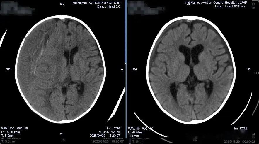 通过放置在腹壁外的引流管,医疗团队每天监测引流情况,并逐步调整引流瓶高度,促进大脑自然复位。这一外引流设计避免了在感染风险期植入永久性分流装置。经过近两个月的恢复,2025年11月底,瑶瑶再次接受手术,移除了硬膜下-腹腔分流管。次日复查头颅CT显示:双侧硬膜下仅残留少量低密度影,脑组织复位良好,中线结构居中。