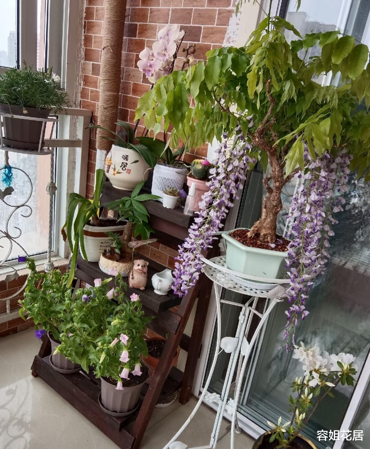 这样的花盆更容易控制花型,让紫藤花不徒长,更容易开花。