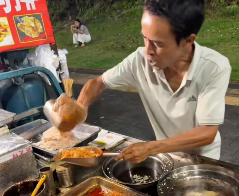 此次 “全国巡炸” 彻底打破了这份 “接地气”。除了明星级排场,他的团队还推出一系列 “网红化操作”:定制专属周边(印有鸡排哥头像的包装袋、钥匙扣)、要求顾客购买鸡排后必须拍照发社交平台才能领取赠品,甚至在摊位旁设置 “打卡墙”,引导粉丝排队拍照。有老粉在社交平台晒出对比图:左边是 2024 年鸡排哥在三轮车旁弯腰给顾客递鸡排的样子,右边是 2025 年他站在高台上,单手将鸡排递给台下粉丝,脸上带着疏离的微笑。该老粉配文:“他递鸡排的手势都变了,以前是双手递,现在是单手,带着一种施舍的架子,再也找不到当初的感觉了。”