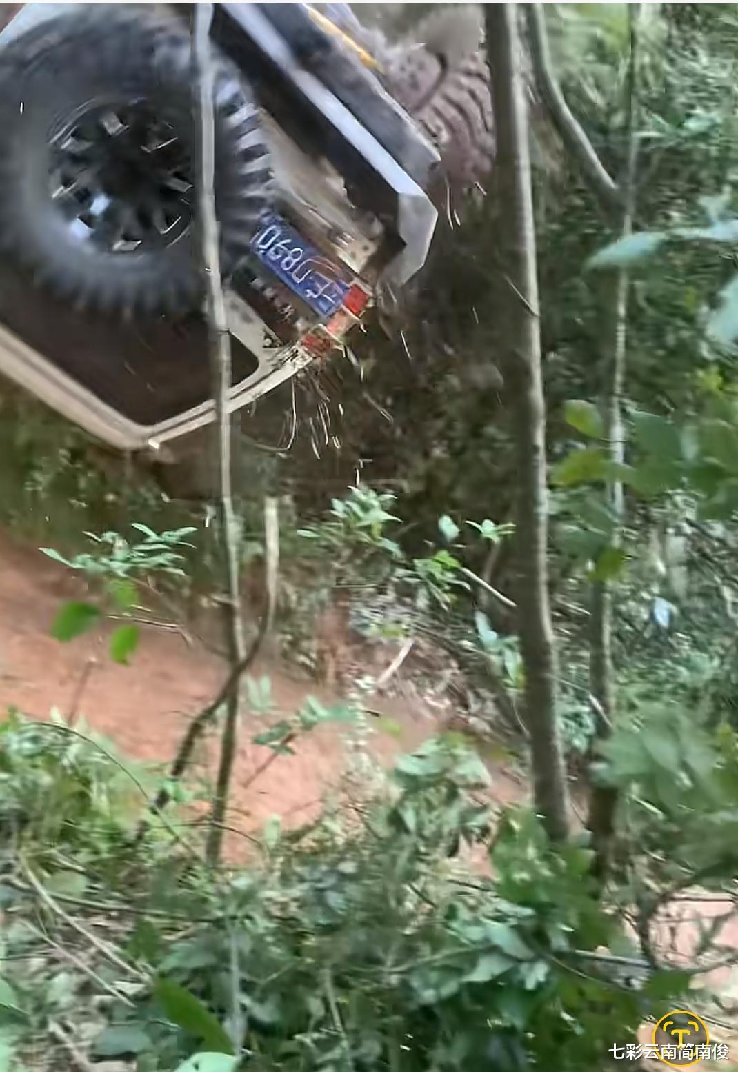 据云南高师傅越野车队队长高师傅发布视频显示,一辆越野车从坡顶向下行驶,坡度较陡,车身太高,不料发生侧翻事故。越野车从坡顶一路侧翻至坡脚,最终停在灌木丛中。