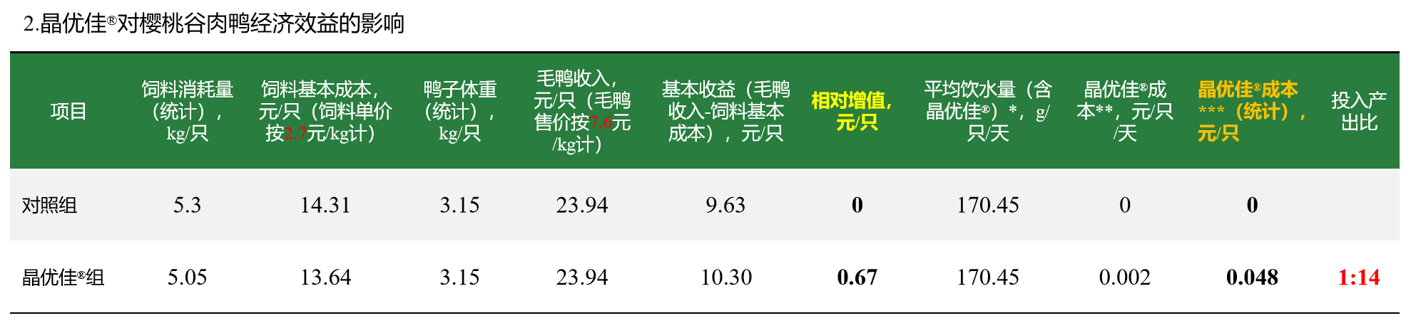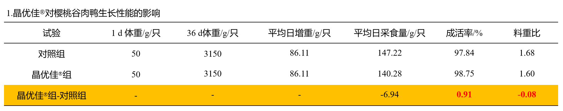 晶优佳®在樱桃谷肉鸭养殖中的实践验证