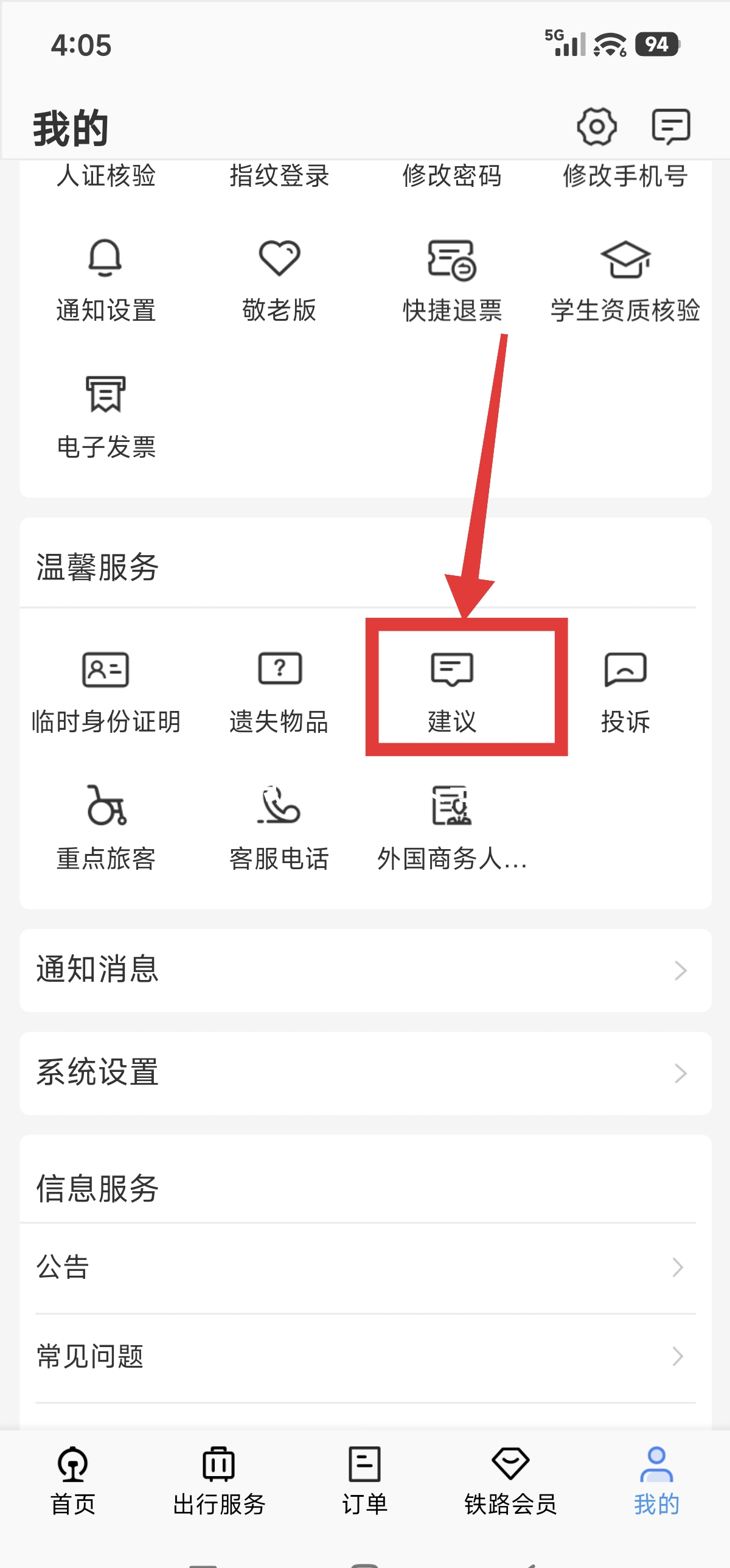 2.到铁路12306主页面后,点击【我的】。