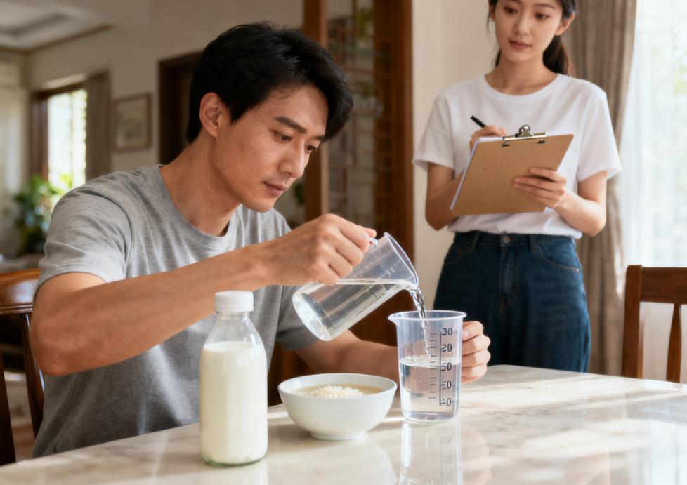 出院后,徐鼎之几乎把自己当成易碎物品一样严格管理。刚回家那天,他连喝口水都小心翼翼,医生叮嘱他“少量多次、慢慢咽下”,他便用量杯计着,一次只喝30毫升温水。每天都是吃脱脂牛奶、米汤、蔬菜清汤等流食,吃得极慢,每一勺都停顿几秒。女友也没闲着,帮徐鼎之换药、擦汗、记录体温,连他服药的时间都精准到分钟。慢慢的,他的体重比出院那天轻了两斤,精神也明显好转。