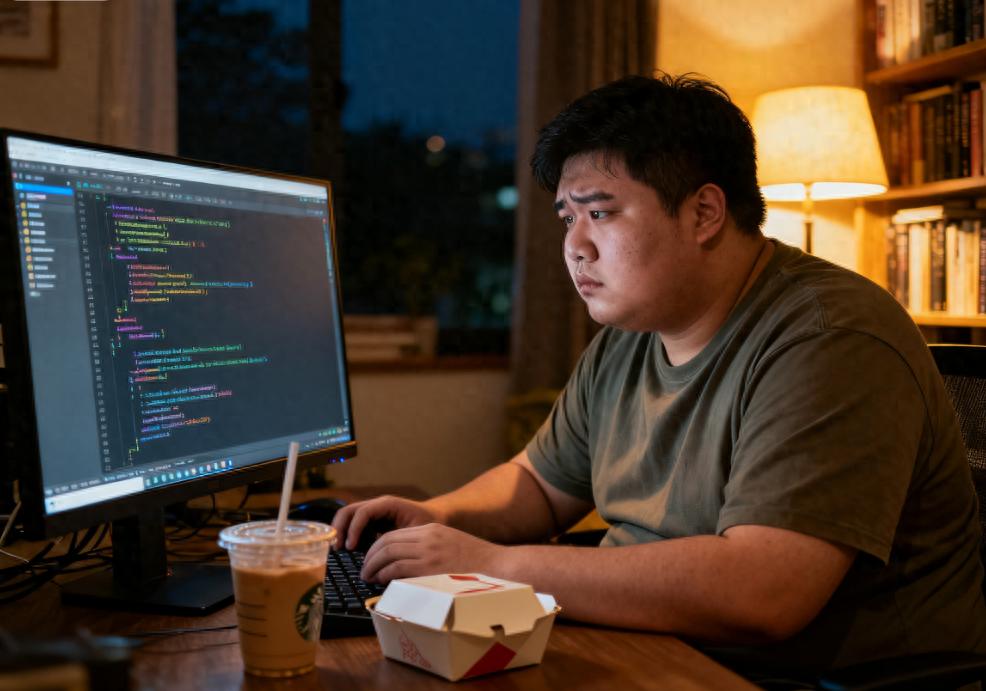 2023年,28岁的徐鼎之是一名来自杭州某家互联网公司的后台程序员。每天面对上万行代码,常常一坐就是十几个小时。为了赶项目,他从不按点吃饭,外卖成了主食,麻辣烫、炸鸡、烧烤、奶茶换着来。深夜敲完代码,徐鼎之还常以一杯奶茶犒劳自己,凌晨三点才睡,第二天又靠咖啡续命,最初,他只是觉得腰围有点粗、衣服紧了点,但没放在心上。两年后,徐鼎之的体重从140斤飙升到280斤,走两步就喘,爬一层楼腿发软,但他压根没放在心里。