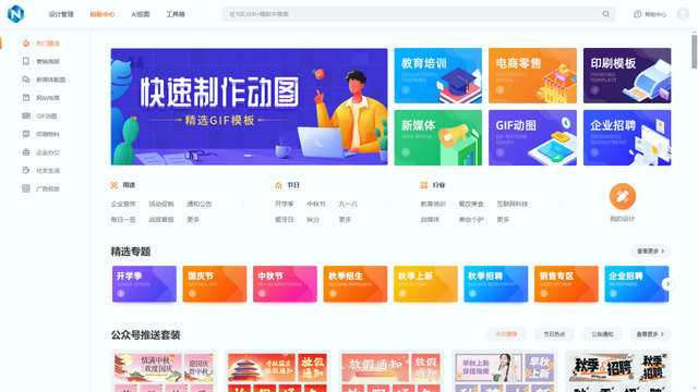 3. 稿定设计:场景化模板多,适合垂直领域稿定设计的垂直领域模板做得不错,比如教育行业的课程海报、餐饮行业的菜单设计、电商行业的详情页模板,针对性很强,不用自己搭框架。操作也比较简单,拖拽式调整,新手学半小时就能上手。