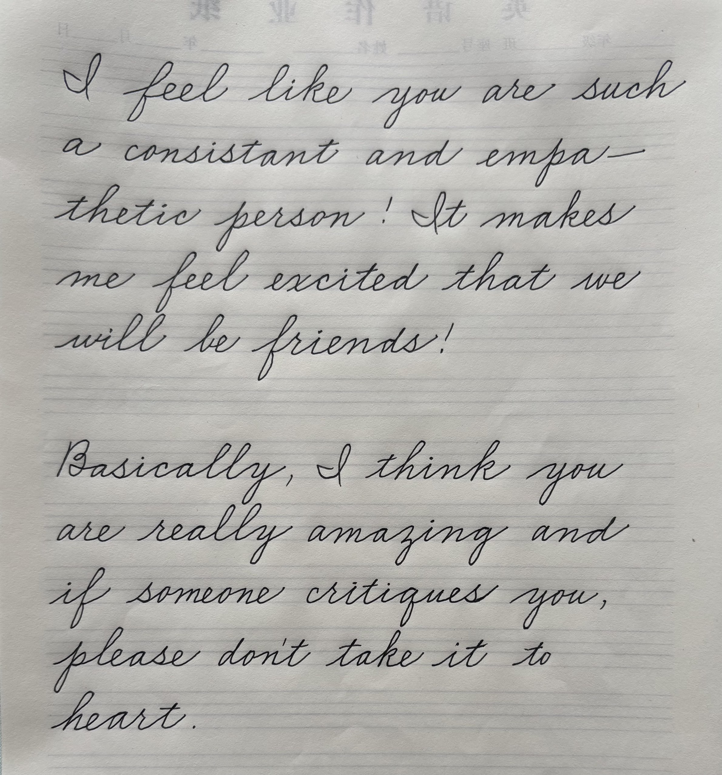 I feel like you are such a consistent and empathetic person ! It makes me feel excited that we will be friends.