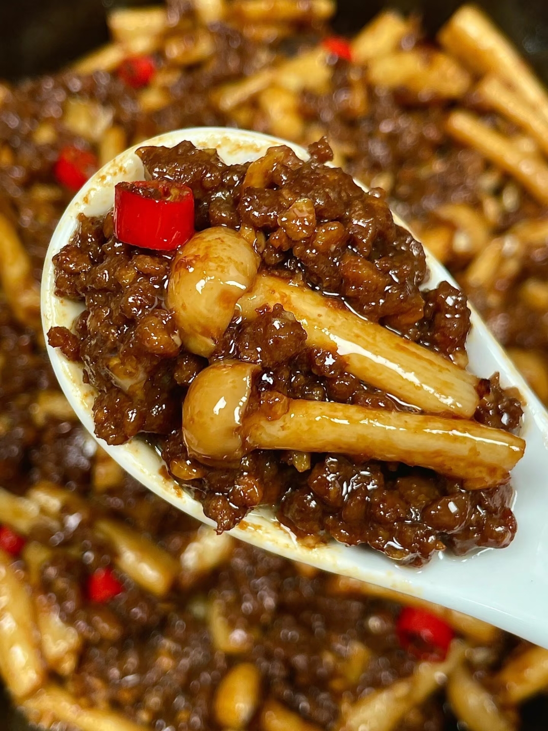 当金黄的肉末裹着莹白的菌菇,浇在刚出锅的米饭上,酱汁顺着米粒的缝隙缓缓渗透,挖一勺送进嘴里,菌菇的鲜、肉末的香、酱汁的醇在舌尖交织成奇妙的协奏曲。这大概就是家常菜的魔力——不需要昂贵的食材,不必复杂的技法,只要用心翻炒,就能把平凡的日子炒出温暖的滋味。下次不知道吃什么的时候,不妨试试这道肉末炒白玉菇,说不定它也会成为你记忆里最鲜美的那道菜呢!