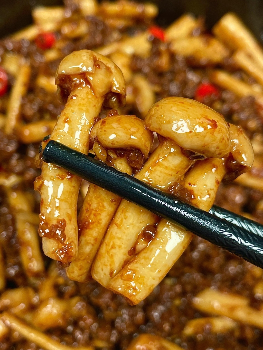 备菜环节藏着三个让味道升级的小心机。首先,白玉菇切除根部后别急着下锅,先用淡盐水泡五分钟——这招能逼出藏在菌褶里的杂质,炒出来更清爽。泡好后轻轻挤干水分,记得别太用力,不然鲜味都跑掉啦!肉末处理也有讲究,先用1勺料酒、半勺白胡椒粉、1勺淀粉抓拌均匀。料酒去腥,白胡椒提香,淀粉则像给肉末穿了件隐形外衣,锁住肉汁的同时还能让口感更滑嫩。最后淋半勺食用油拌匀,炒的时候就不会粘成一坨啦!调酱汁是这道菜的灵魂所在!取个小碗,2勺生抽打底,1勺蚝油提鲜,半勺白糖中和咸味,再兑半碗清水搅匀。喜欢酸甜口的可以加半勺番茄酱,嗜辣的朋友切两个小米辣扔进去,瞬间变身下酒神器!