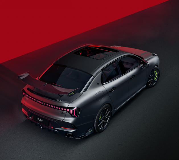 空气动力学组件是新领克03+性能进阶版外观和性能上的亮点。碳纤维材质的三段可调尾翼提供三种角度设定,与碳纤维前铲协同工作,可在高速时为车辆增加最大186.3公斤的下压力,增强行驶稳定性。尾翼侧部的Downforce徽标中融入了宁波国际赛道的轮廓线,这一细节设计体现了其对赛道传统的致敬。在外观设计上,金色的车身配色显得格外醒目,搭配低趴的车身姿态和运动套件,视觉效果出众。车内环境同样注重运动氛围的营造,Alcantara材质座椅、换挡拨片以及联动驾驶模式的氛围灯,都旨在提升驾驶者的参与感。