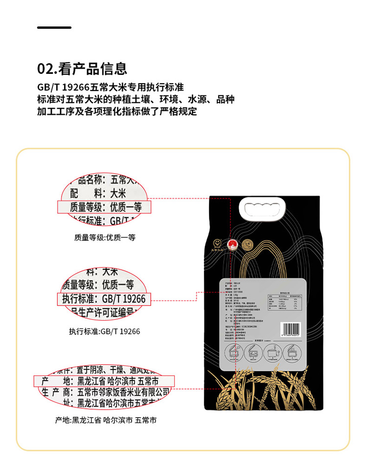 二看执行标准:邻家饭香五常大米执行标准均为gb/t19266;