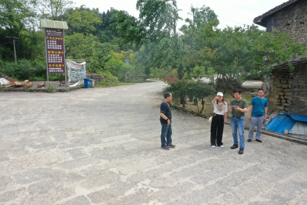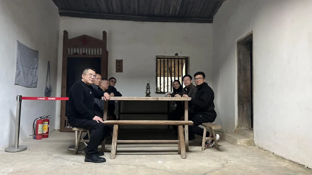 就在当地负责人讲解话音未落时,执行院长蔡恒儿突然抬头惊呼:“你们看天上!”众人抬头望去,只见云层间竟裂开一道规整的缝隙,阳光如瀑布般倾泻而下,形成了“龙开天口”的罕见天象。蔡恒儿急忙拿出手机拍下这一幕,戴欣明的目光则落在了故居墙上的历史说明牌上,他提议:“圣发、恒儿,咱们仨在这儿合张影,今天这场景太特别了。”戴欣明现场赋诗一首: