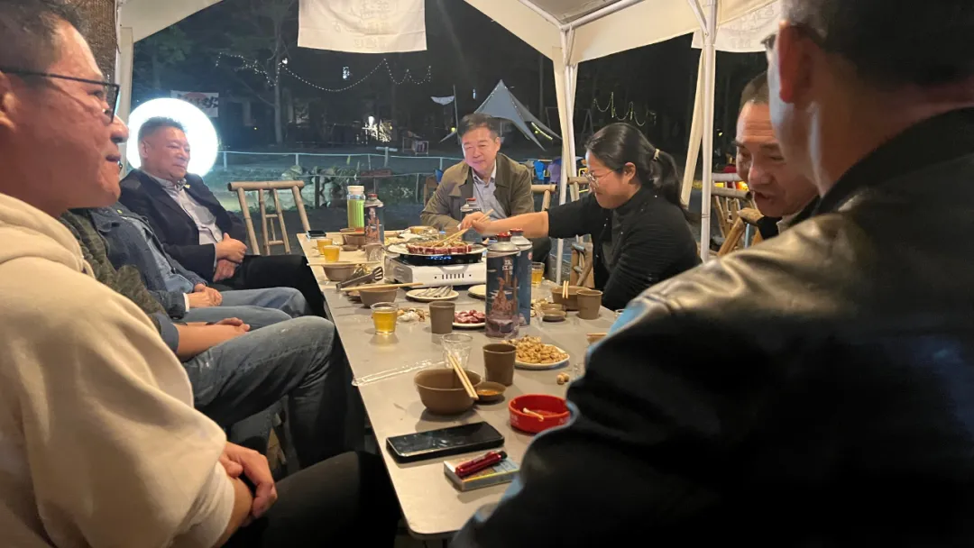 禅域小镇负责人潘立林,颜顺钦,戴欣明,字:动能,号七大山人的弟子梁鑫等在禅域小镇宵夜