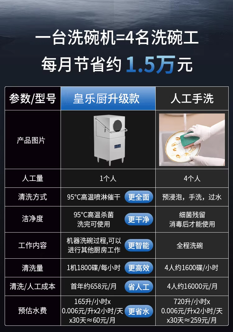 谁懂啊!做餐饮 / 食堂最头疼的就是洗碗环节了… 人工贵、耗水电、洗不干净还怕卫生不达标😩 直到换了这款皇乐厨长龙商用洗碗机每月直接多赚大几千!