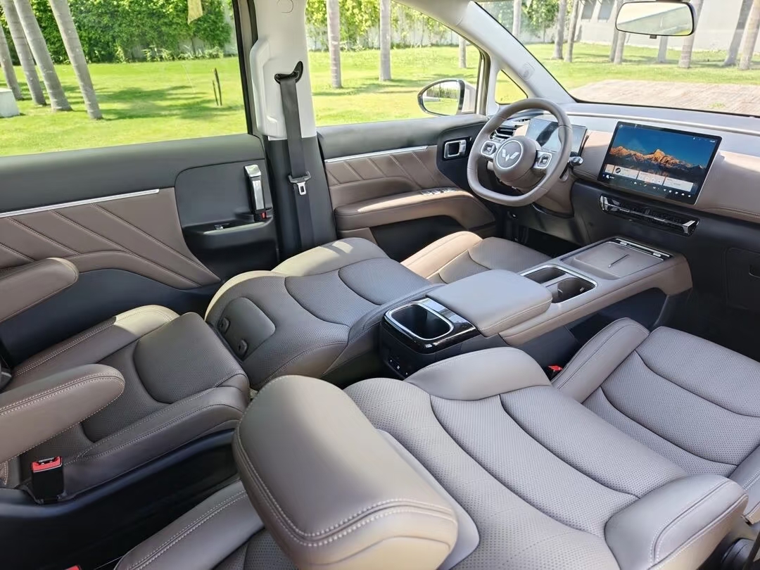 周末带爸妈 + 俩娃出游,2910mm 轴距(官方数据)让三排不憋屈,娃能站直找玩具;后备厢放倒后 1202L(官方数据),帐篷、野餐垫全装下,50W 无线充电还能随手补手机电。
