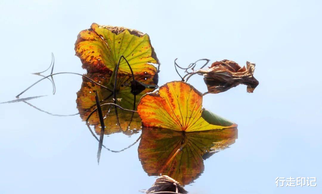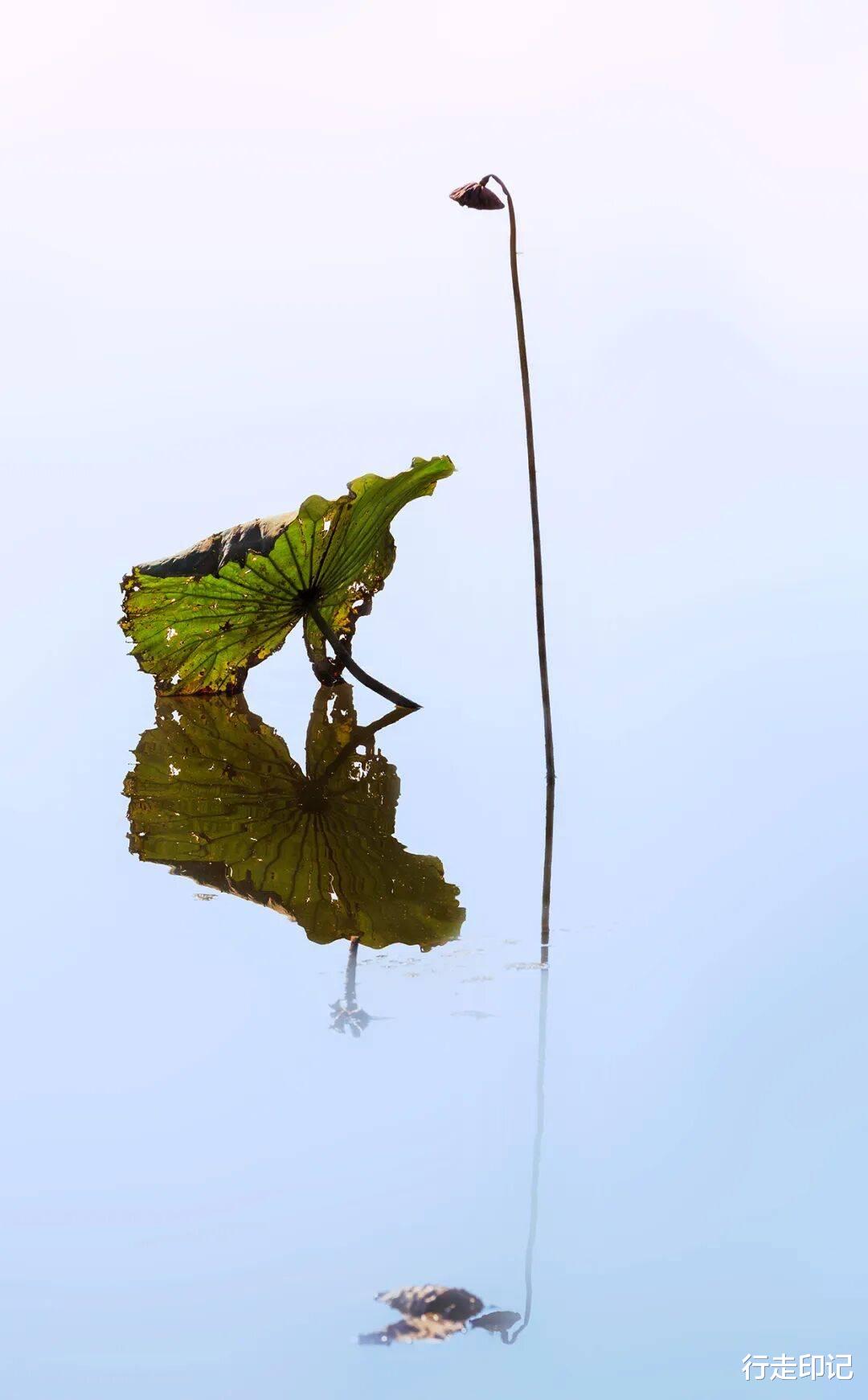 此时的荷塘,是一幅极简的水墨画。很多人爱它盛放时的娇艳,但我更敬重它此刻的线条。
