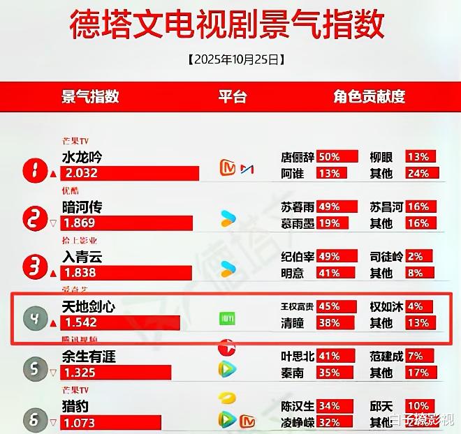 要说热度最高的还是《水龙吟》,其次《暗河传》,而《天地剑心》刚播不久,也说不定后面会反超。
