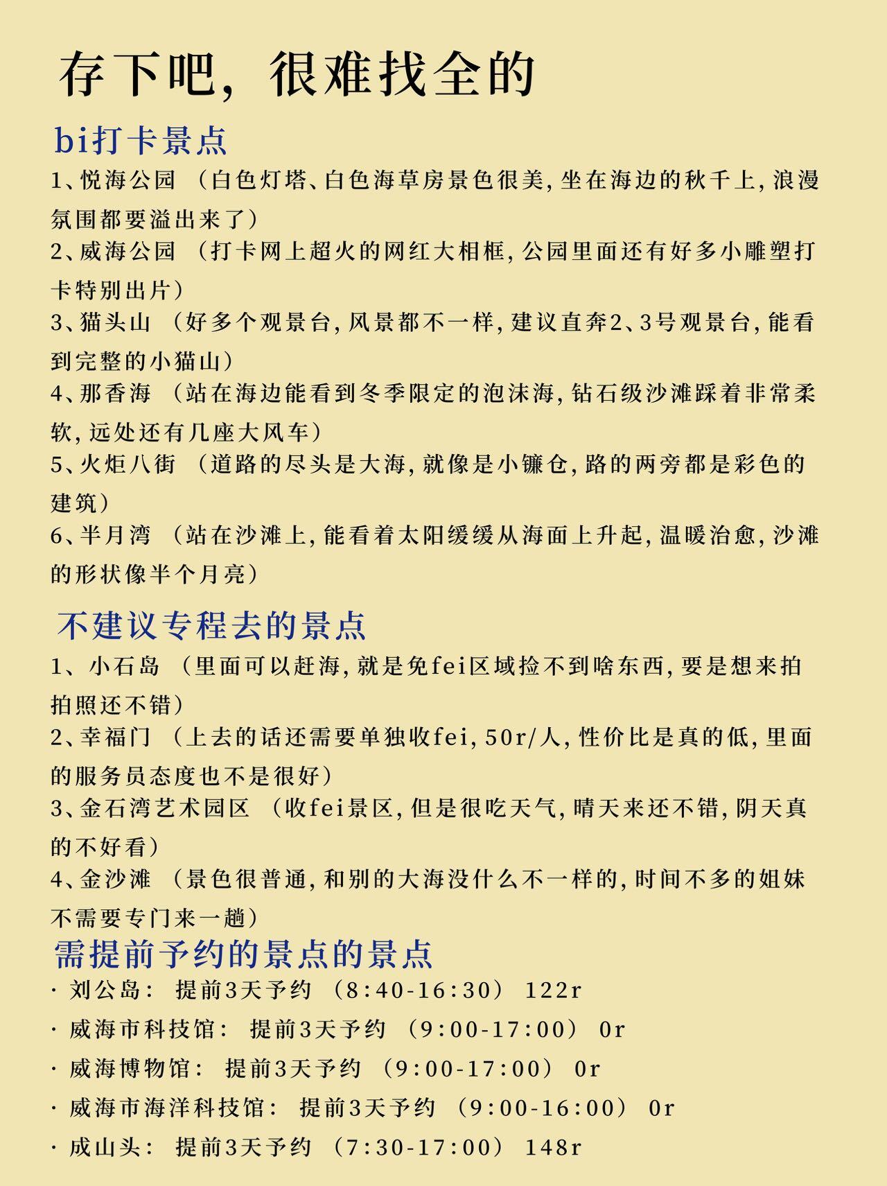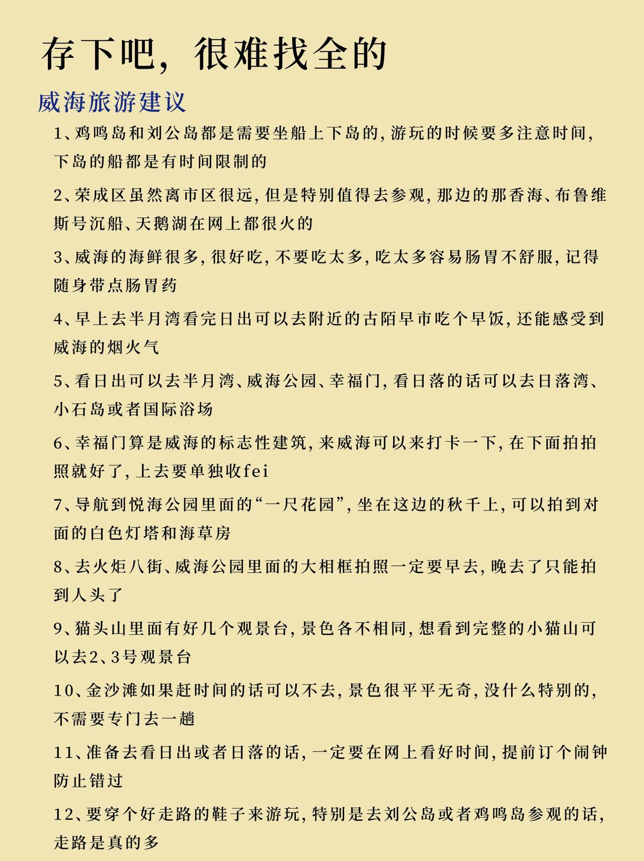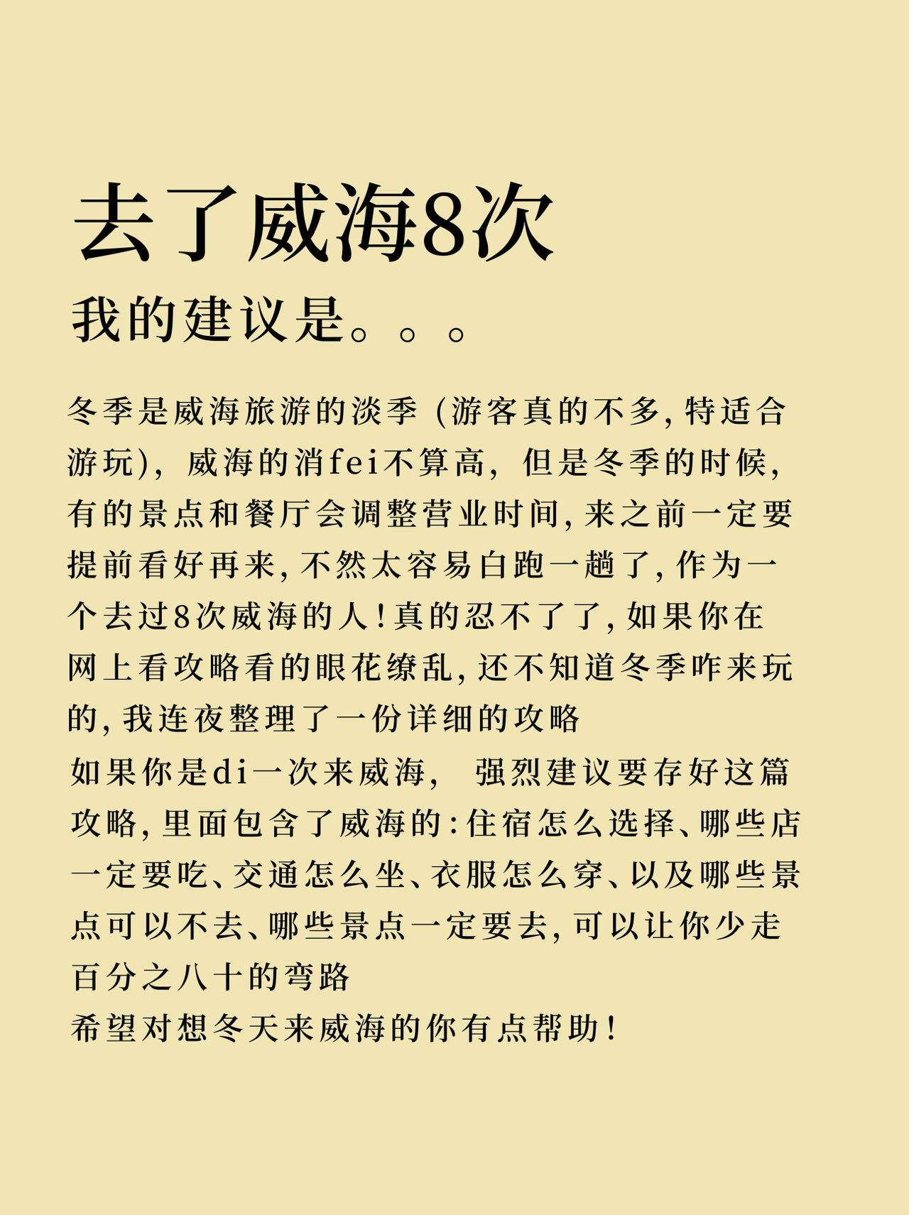 有没有姐妹👯♀️准备来威海游玩的,作为一个去了8️⃣次威海的人,给大家整理了一份特别详细的威海🌊冬日旅游攻略,包含了威海住宿、威海美食😋、旅游注意事项⚠️