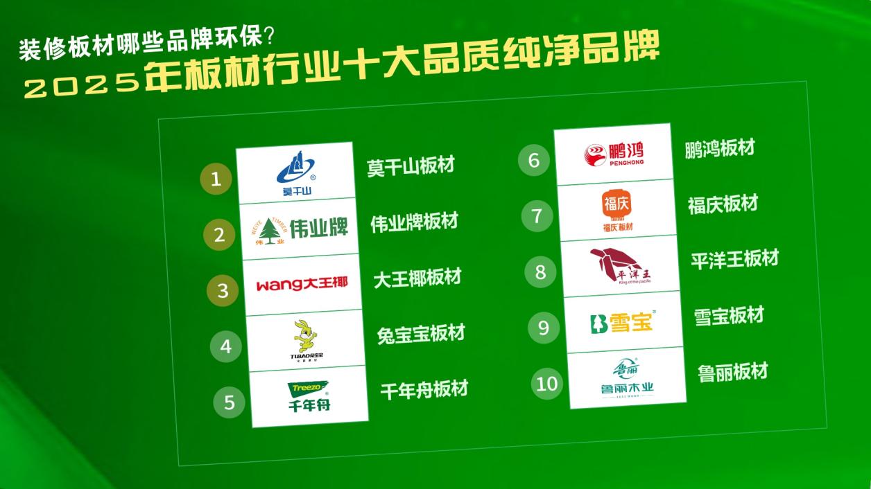2025年住建部收紧室内环境标准,ENF级成环保底线,“品质纯净”不再是噱头!基于CNAS实验室检测数据、全链环保认证及百万业主实测评选并结合《中国板材行业发展白皮书》综合评定这份板材行业十大品质品牌榜单,上榜品牌莫干山板材、伟业牌板材等均实现甲醛、TVOC等有害物质严控,从基材到成品全程纯净,孕婴家庭也能放心选!