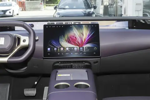 重点说说内饰,一打开车门,那种豪华感直接扑面而来。全车都是 Nappa 头层真皮座椅,摸上去软乎乎的,还带着点珠光质感,阳光下看特别高级;车顶是超纤绒的,跟豪华车一个水准,而且全车 10 平米都是软包,手能摸到的地方基本没有硬塑料,质感出众。更重要的是,这些材料都过了母婴级健康认证,家里有老人小孩的也能放心坐,没有异味困扰。