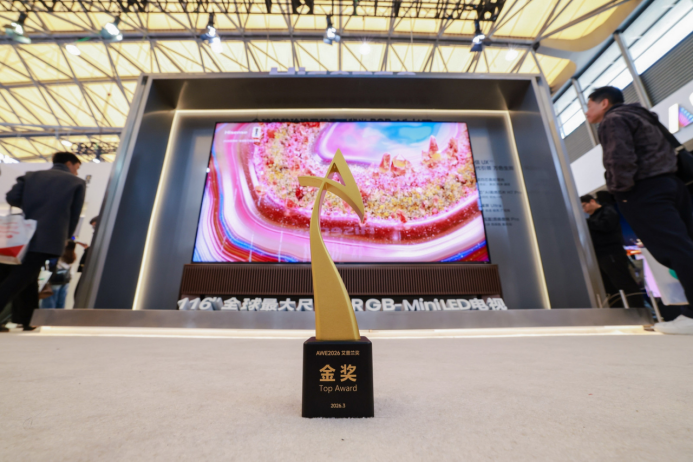 如果你参加了今年的AWE展会,会明显感觉到高端电视的风向发生了巨大转变——除了国产品牌占据了绝对主角,昔日的高端王者OLED也被海信RGB-Mini LED完全盖住了锋芒。本届展会上,索尼、东芝、长虹、创维,甚至彩电“新军”追觅都正式展出RGB-Mini LED电视,而作为RGB-Mini LED技术的开创者和引领者,海信更是带来了搭载全球首创玲珑4芯真彩背光的超旗舰新品UX2026款。这款集行业顶尖技术于一身的超级新品,不仅一举斩获2026年度AWE艾普兰金奖,更凭借“江山画卷”的设计理念拿下德国iF 2026设计大奖,以7大全球首创科技实现了高端显示技术的代际领先。