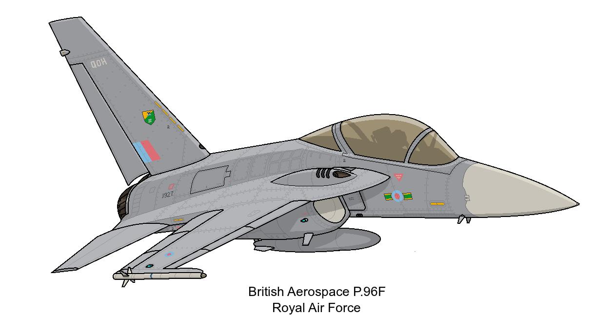 飞机机头可能安装了一个雷达,可能是开发中的蓝狐雷达。为了打击空中目标,P.96F可携带两枚放置在翼尖上的 AIM-9 响尾蛇短程导弹, AIM-7 麻雀中程导弹或当时研制之中的BAe“天空闪光”导弹。右翼根部的根部安装了一门机炮。机翼下方和腹部的挂架可挂载副油箱和各种炸弹负载。BAe预计如果在 1980 年中期启动,首飞将在 1983 年 8 月进行。