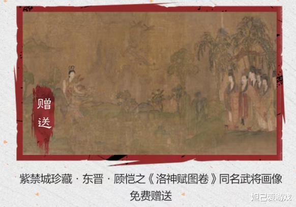 故宫里珍藏的东晋顾恺之《洛神赋图卷》和明代商喜《关羽擒将图轴》,这两幅在博物馆里只能隔着玻璃远观的传世之作,现在要以武将画像的形式免费送给玩家了,现在能在游戏里天天看到,这种文化跨界的创意实在是太赞了!